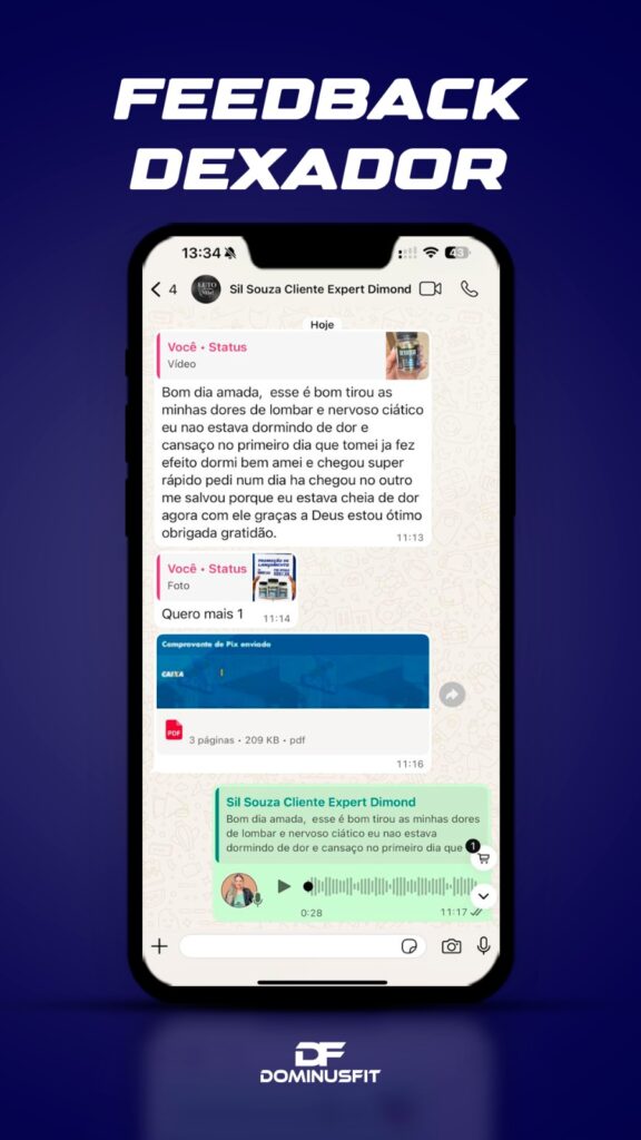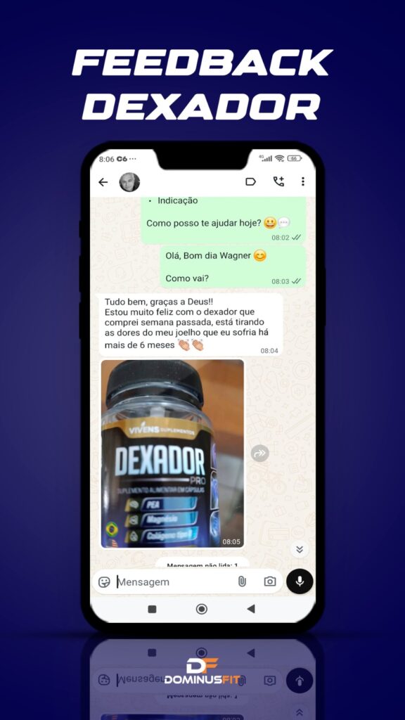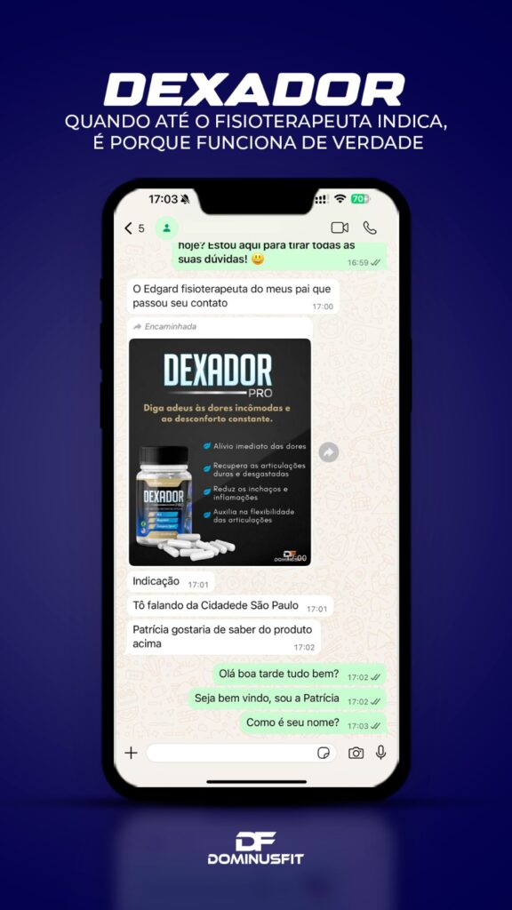O DEXADOR repõe o colágeno que seu corpo perdeu com a idade e reduz a inflamação que o peso e as lesões causaram nas articulações. O resultado é simples: menos dor, mais movimento e muito mais leveza pra viver o dia inteiro sem travar. Ideal pra quem sente o corpo rígido, joelho rangendo ou desconforto ao levantar.